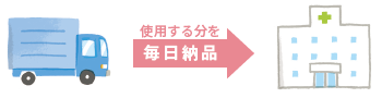 病院に前もって在庫しておくことができません。そのため、患者さんの検査や治療を行われる日に合わせて、必要な分だけが工場から病院に届けられます。